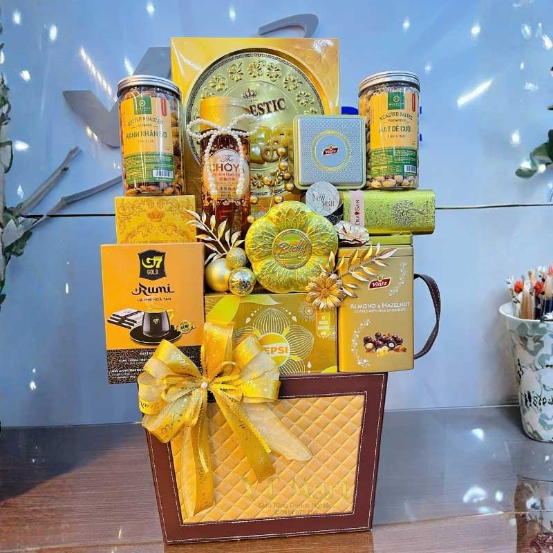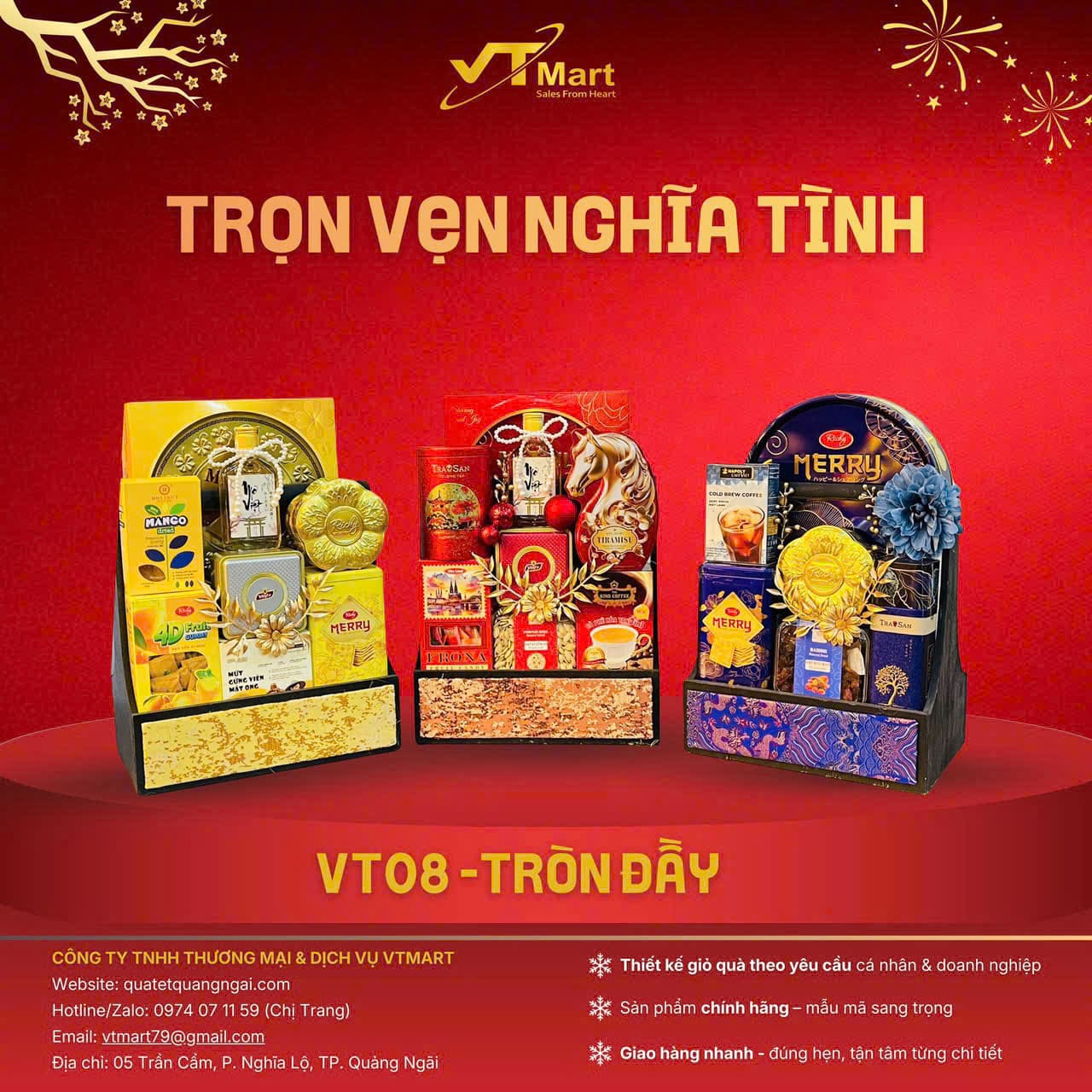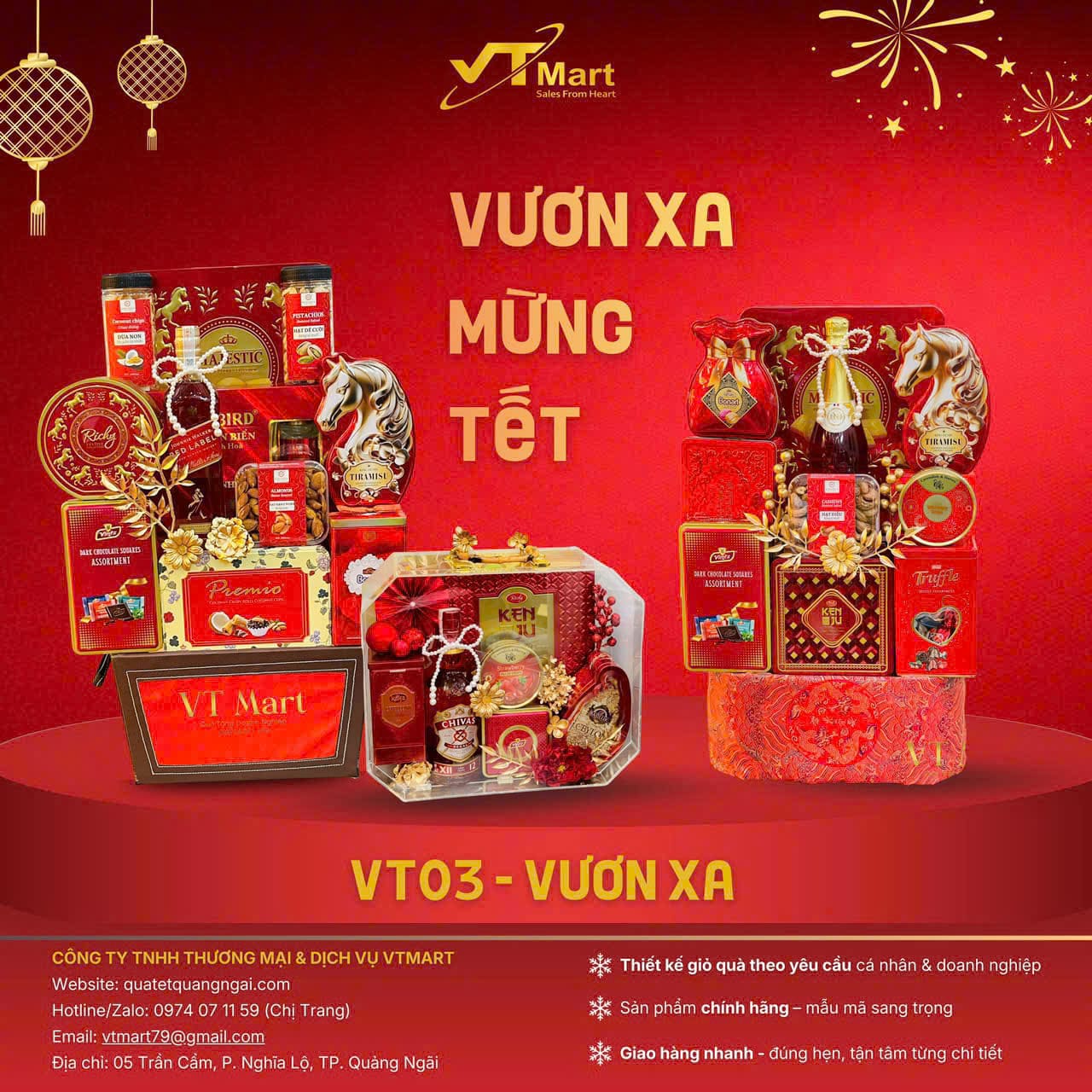 Với nhiều năm kinh nghiệm Thiết kế quà tết, VT MART Tự hào là nơi cung cấp giỏ quà tết theo xu hướng mới, đẹp, sang, chất lượng, cung cấp số lượng lớn giỏ quà tết tại Quảng Ngãi.![]()